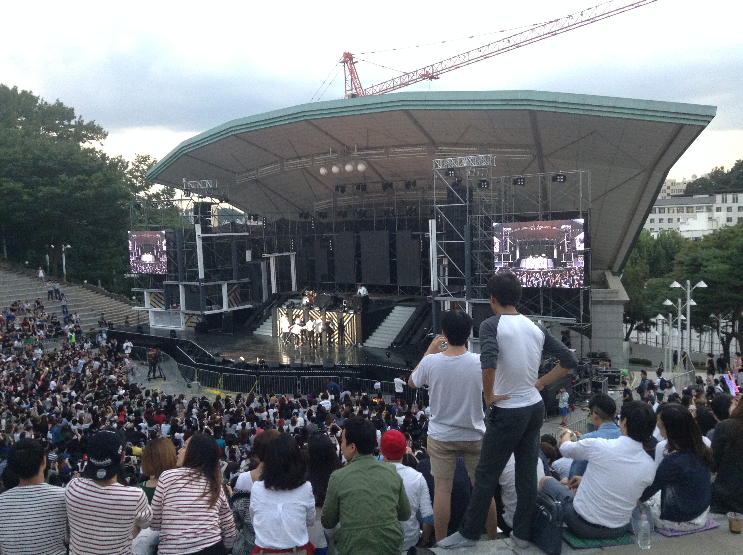 Before it got dark and the party really got started at Brave.Being in Seoul has been incredible even though I’ve barely taken advantage of the music scene. I’ve been to two concerts, sure. One was the Brave Concert hosted at Yonsei University each year – 30,000 won and I got to see a plethora of artists I enjoy and a few that I love (did someone say San-E, Jay Park, BTS, and Dynamic Duo? Mmm yes please. I didn’t know until that day that I’ve been living the last few years of my life for the sake of singing 불행했음 좋겠다 with San-E and 좋아 with Jay Park live….)…and a couple I’d never listened to in my life. The other was the free SKY Festival in Incheon. Both were definitely worthwhile to go to, but to me, I love street music just as much as official concerts. In fact, I sometimes love it more.