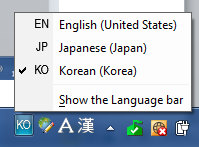 NOTE: The default typing system will remain in English no matter what keyboard you switch to. However, if you look at your taskbar, pressing these hot keys will alter the keyboard so you can toggle between Korean and English when using the Korean keyboard. This sounds confusing but once you start using it, it will make a lot more sense.
